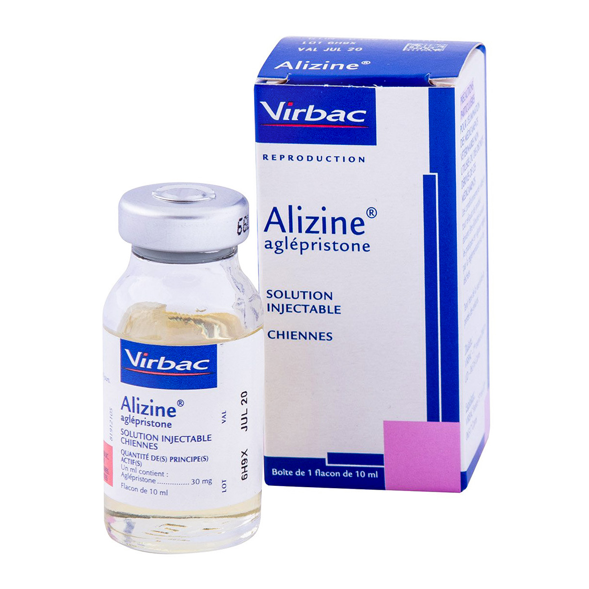 Ализин – лекарственное средство для собак и кошек, назначаемое при лечении пиометры, также купить препарат можно для прерывания нежелательной беременности для медикаментозного аборта у животных. Медикамент реализуется в интернет-магазинах, специализирующихся на ветеринарных лекарствах, во флаконах ёмкостью 10 мл в одной упаковке. На Ализин для собак цена невысокая, поскольку лекарство принадлежит к доступной категории гормональных средств с действующим веществом аглепристоном – синтетическим стероидом и антагонистом прогестерона. Действие препарата основано на сдерживании в полости матки рецепторов прогестерона.